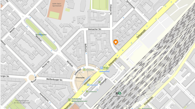 Die Kanzlei befindet sich im Herzen von München- Haidhausen; zu Fuß etwa 5 Minuten vom Ostbahnhof entfernt.